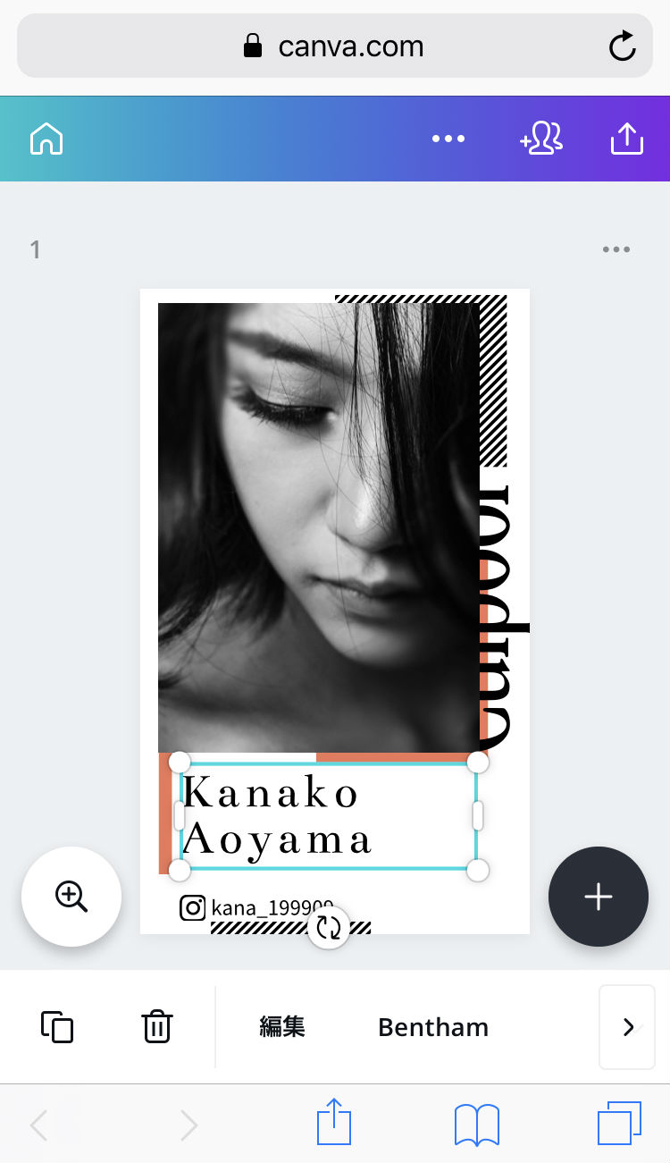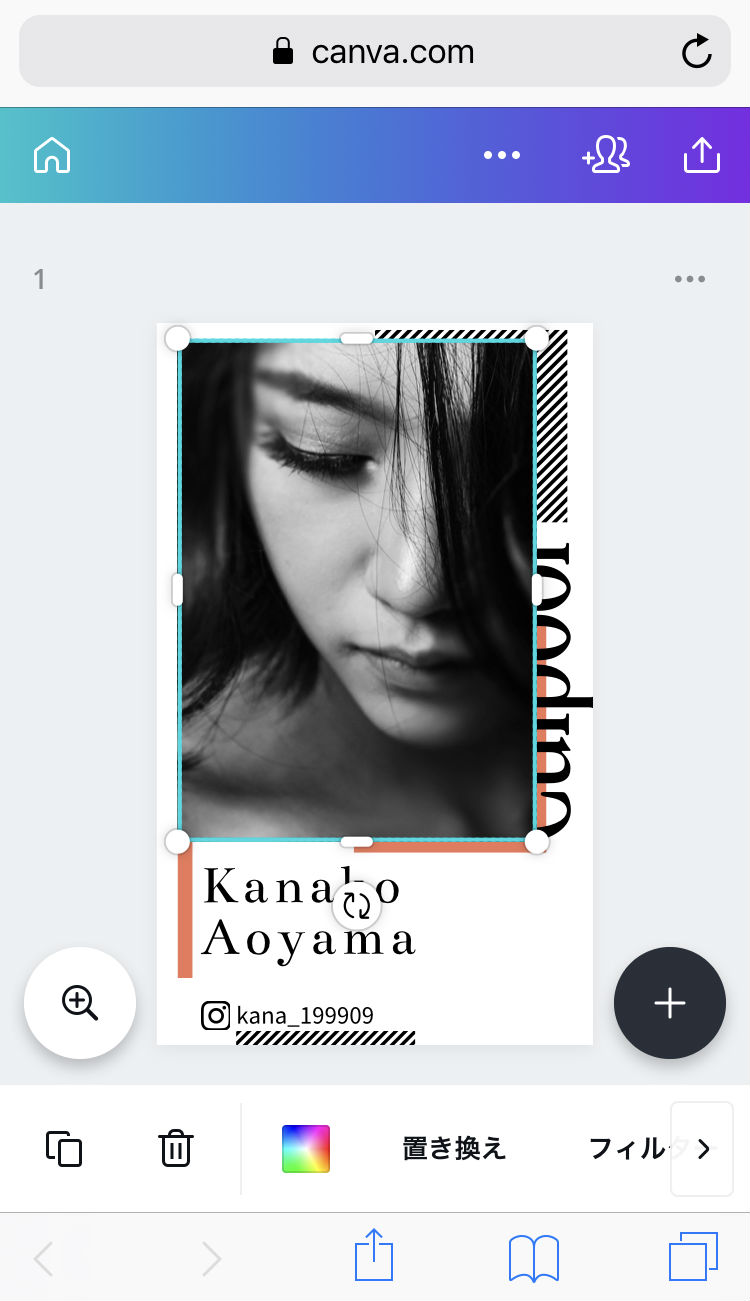 Canva 登録後にこのページ内でお好みの名刺・ポストカードを選び「デザイン」ボタンをクリックすると編集画面に変わります。