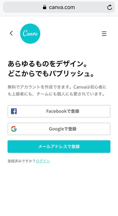 名刺・ポストカードをデザインするには、最初に無料デザイン作成ツール Canva のアカウント登録が必要です。アカウント登録が終わりましたら、お好みのデザインを選んでデザインを作成してください。