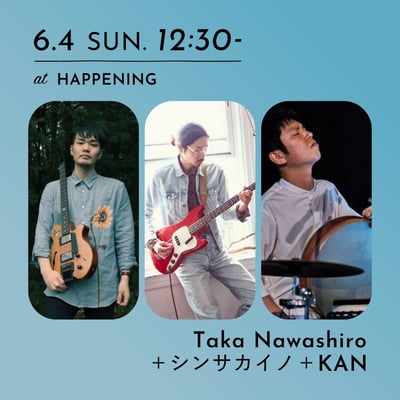 6/4はJAZZフィールドで活躍中のピアニスト壷阪健登と名門Verveよりメジャーデビューしたばかりのベース&ボーカリストの石川紅奈によるユニットsoraya、Apple Vinegar Award」で大賞を受賞、石橋英子、ジム・オルーク、山本達久、大友良英らと共演し、今最も注目を浴びるパプアニューギニア育ちのサックス奏者で作曲家の松丸契、ニューヨークでの音楽経験を積み、多数のセッションでのスピリチュアルな演奏が話題を呼ぶギタリストのTaka Nawashiroがベーシストのシンサカイノ、パーカッショニストのKANを迎えてトリオ編成でライブを展開します。